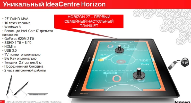 Действительно, летом 2013 года Lenovo представит на российском рынке новые устройства консьюмерской линейки Idea и корпоративные Think, практически все на ОС Windows 8. Для массового сегмента ожидается выход 27-дюймового (Full HD MVA) семейного планшета с аккумулятором IdeaCentre Horizon. Линейка моноблоков IdeaCentre пополнится двумя моделями с сенсорными экранами А730 (27 дюймов) и S540 (23 дюйма). Ультрабук с поворотным экраном IdeaPad Yoga станет доступным в новом форм-факторе, получив HD-экран с диагональю 11,6 дюйма. Ну и наконец, на Windows 8 и с сенсорными экранами станут доступны ноутбуки IdeaPad Z400/500 Touch (матовый дисплей 14”/15,6”) и ультрабуки IdeaPad U 410/310 Touch (13,3”и 14”). Что касается планшетов IdeaTab и линейки смартфонов Lenovo, то их ожидает обновление модельного ряда наряду с переходом на ОС Android 4.1 Jelly Bean.