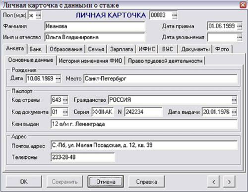 Облачное решение «КОМПАС КАДРЫ». Личная карточка сотрудника