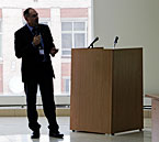 Г-н Мышкин предложил три сценария развития ИТ-систем: развитие существующей ИТ-системы, частичная унификация ИТ-системы (комплекс типовых ИТ-систем) и создание единой ИТ-системы. Спикер считает централизацию ИТ (единую сервисную компанию) более успешным вариантом, нежели децентрализацию ИТ. Спикер нашел полезным и CobIT – набор стандартов, которые позволяют произвести аудит и анализ бизнес-процессов в ИТ-службе.