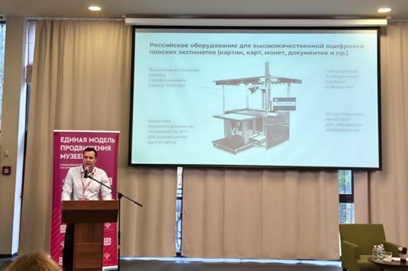 Особое внимание в докладе было уделено технологии художественной съёмки и фотофиксации, которая обеспечивает возможность перевода в цифровой вид нестандартных и стационарных экспонатов, включая скульптуры, барельефы, фрески и архитектурные элементы. Панорамная съёмка с проявлением текстуры и устранением недостатков освещения позволяет создавать цифровые экспозиции с сохранением оригинальной фактуры предметов.